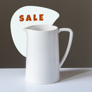Jug with large handle and 2l capacity in beige color with black dots on a white background