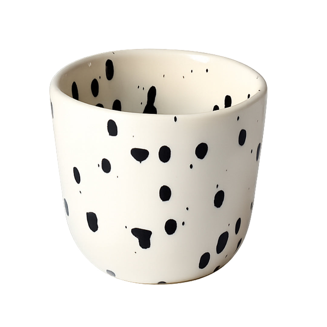 Our cappuccino cup without a handle is the ideal companion for anyone who wants to enjoy their cappuccino in a stylish and modern way. The unique "Black Dots" design with hand-applied black dots on a cream-colored background turns every coffee cup into a small work of art - making every sip a special moment.